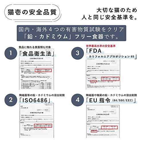 人間よりもずっとずっと猫の体は小さい・・・。少量の有害物質でも人が受ける影響よりも、猫の受ける影響は大きいです。大切な猫の為、人と同じ安全基準をクリアした食器を選んであげましょう。猫壱のハッピーダ